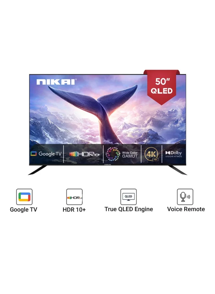 The NPROG50QLED is packed with features designed for a premium viewing experience. The standout features include the vibrant QLED display with Dolby Vision and HDR10+ support, the intuitive Google TV interface, and the hands-free voice control via Google Assistant. The inclusion of multiple HDMI and USB ports ensures effortless connectivity with all your devices. Having 16GB of internal memory, plus 2GB of RAM, offers ample space for apps and media. The slim bezel design complements its sleek aesthetic, making it a stylish addition to any living room.