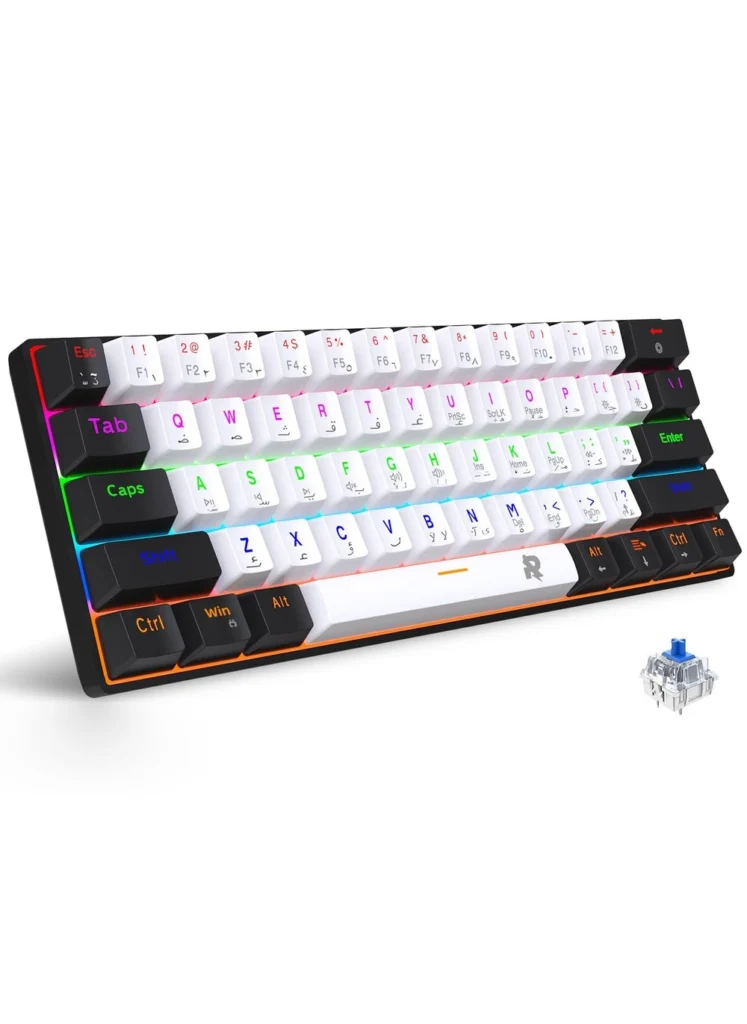 I’ve spent the last few weeks putting the 61keys Wired 60% Arabic English Mechanical Gaming Keyboard (Rock Keyboard – Model Number: Rock Keyboard) through its paces. This compact keyboard promises a blend of bilingual functionality, satisfying mechanical typing, and ergonomic comfort. Let’s dive into whether it delivers on these promises.