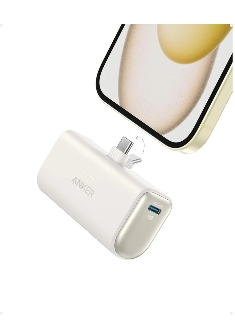 This power bank boasts several key features: Its dual USB-C ports with PowerIQ 3.0 technology enable fast charging up to 22.5W. The integrated, foldable USB-C connector is a clever design that eliminates the need for a separate cable and keeps things neat. The small size makes it extremely pocketable, perfect for on-the-go charging. The white color adds a touch of style without being ostentatious.