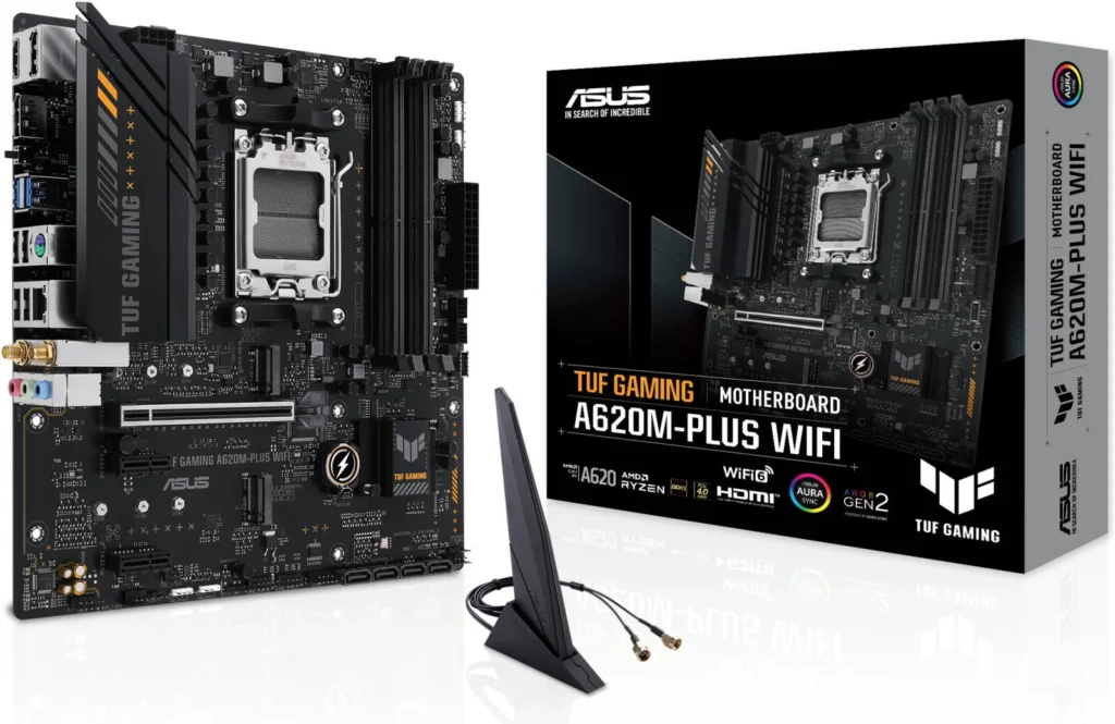 The ASUS TUF Gaming A620-Plus Wi-Fi is a budget-friendly AM5 motherboard aimed at gamers and enthusiasts looking to build a powerful system without breaking the bank. It boasts a strong feature set, including support for AMD’s latest Ryzen 7000 series processors, DDR5 memory, PCIe 4.0, Wi-Fi 6, and a 2.5Gb Ethernet port. But does it deliver on its promises? Let’s dive into our in-depth review to find out.