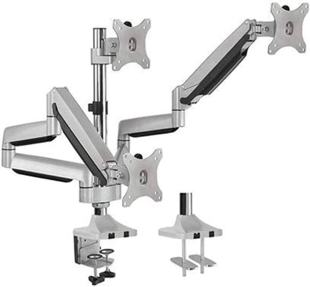 The AWH Counterbalance Triple LCD Monitor Arm SH 100 C036 promises to revolutionize your multi-screen setup with its sleek design and robust build. This monitor arm boasts the capability to support three monitors up to 27 inches, making it ideal for professionals, gamers, and anyone seeking to maximize their desk space and improve ergonomics. In this review, we delve into the features, performance, and overall value of this monitor arm, providing you with a comprehensive assessment to help you make an informed decision.