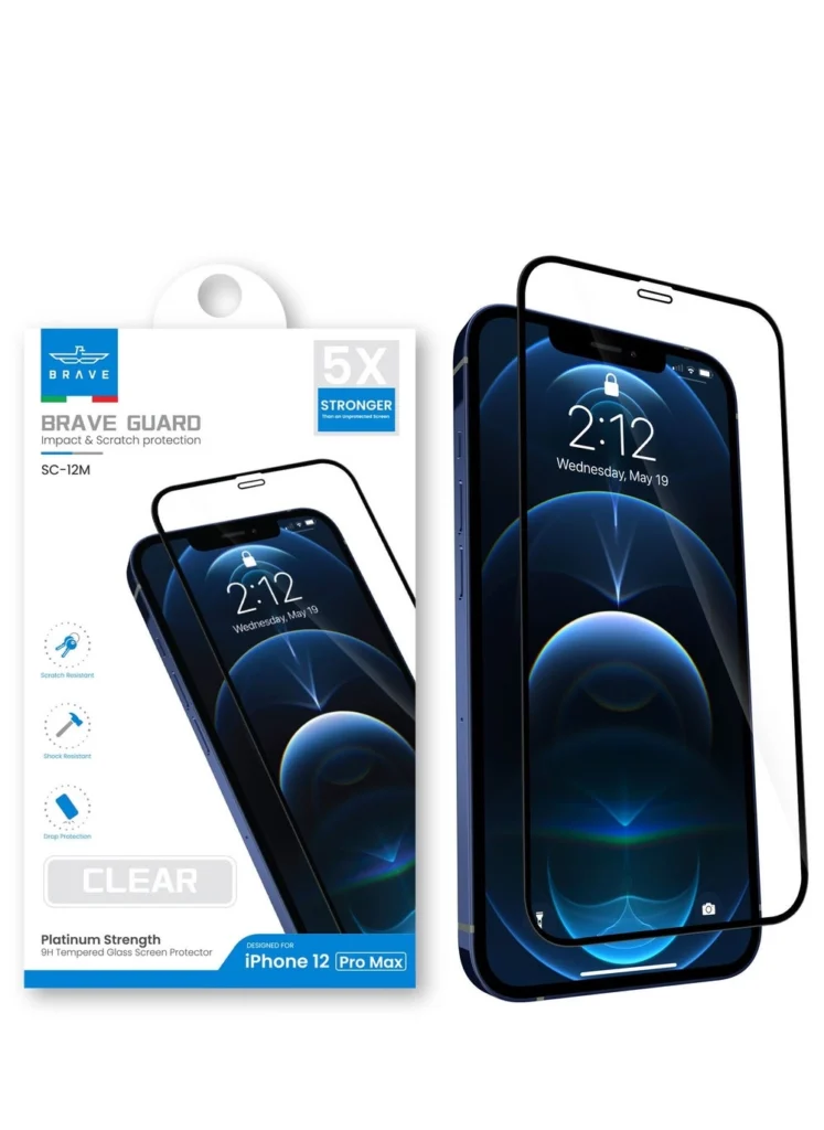 | What’s In The Box | 1 x BRAVE Platinum Tempered Glass Screen Protector for iPhone 12 Pro Max 6.7 Inch, Alignment Tray, Microfiber Cloth, Cleaning Wipe, Dust Removal Sticker and User Guide |