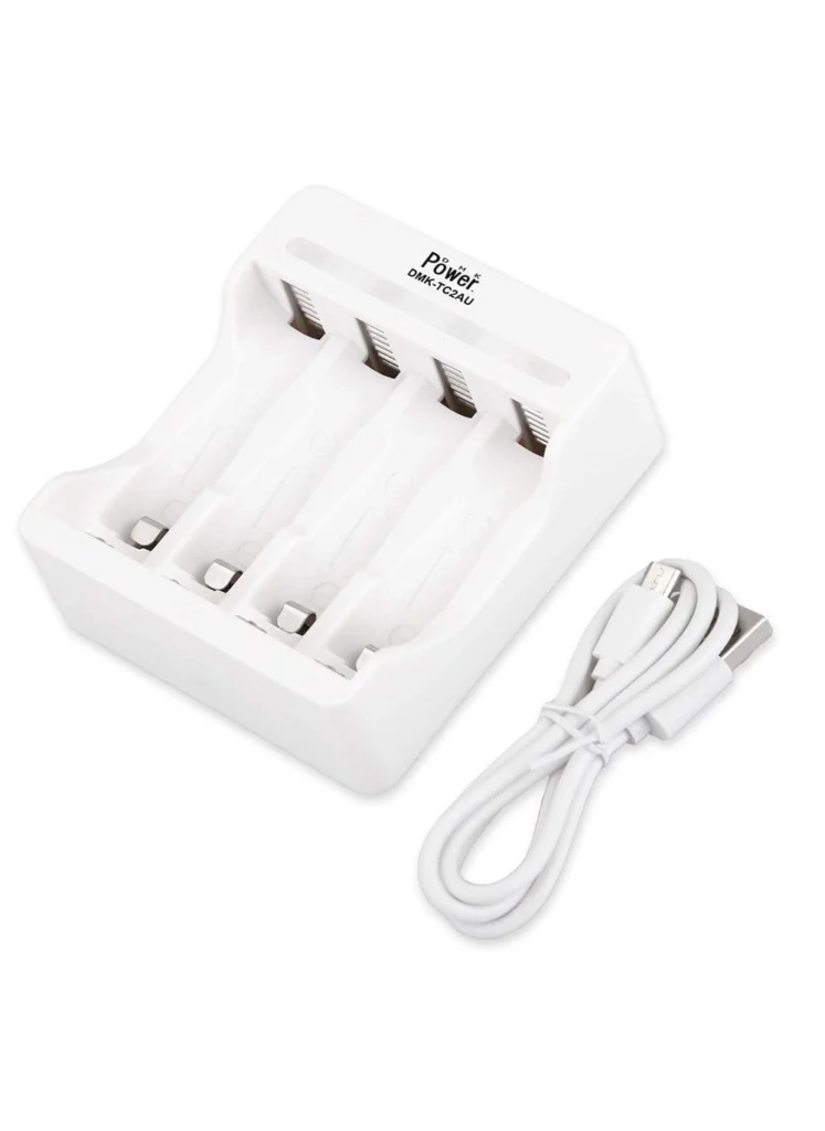 The DMK Power TC2AU AA AAA Over Light LED Battery Charger (DMK-TC2AU) provides a reliable and convenient charging solution for AA and AAA rechargeable batteries. Its four independent slots and clear LED indicators make it easy to use. While it does get slightly warm during longer charging sessions, it doesn’t detract significantly from its overall performance and usefulness. For its price and functionality, I would recommend this charger to anyone seeking a simple yet effective way to recharge their rechargeable batteries.
