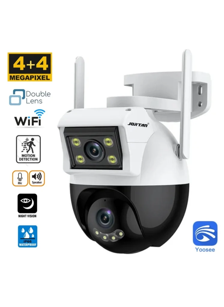 The JT-8290 boasts a compelling array of features, starting with its dual-lens design that provides a wider field of view compared to single-lens cameras. This, combined with its 4MP resolution, delivers incredibly crisp and detailed footage, both day and night. The camera’s wireless connectivity makes setup a breeze, and the remote access feature allows you to monitor your property from anywhere with an internet connection.