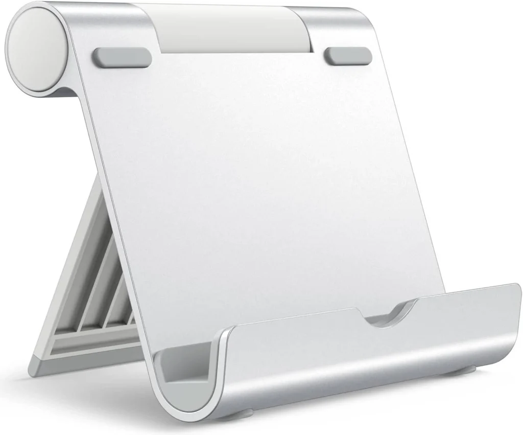 - Adjustable Viewing Angle: The stand’s flexible design allows you to adjust the viewing angle to suit your needs, whether you’re sitting upright or lying down.