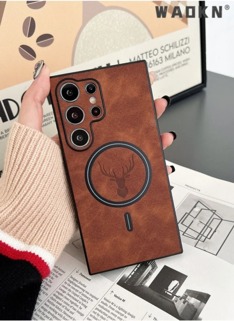For weeks, I’ve been putting the Lambskin Leather Elk Pattern Case for Samsung S24 Ultra through its paces. This brown leather case promises MagSafe compatibility, shockproof protection, and a luxurious feel. But does it deliver on these promises? Let’s dive in.