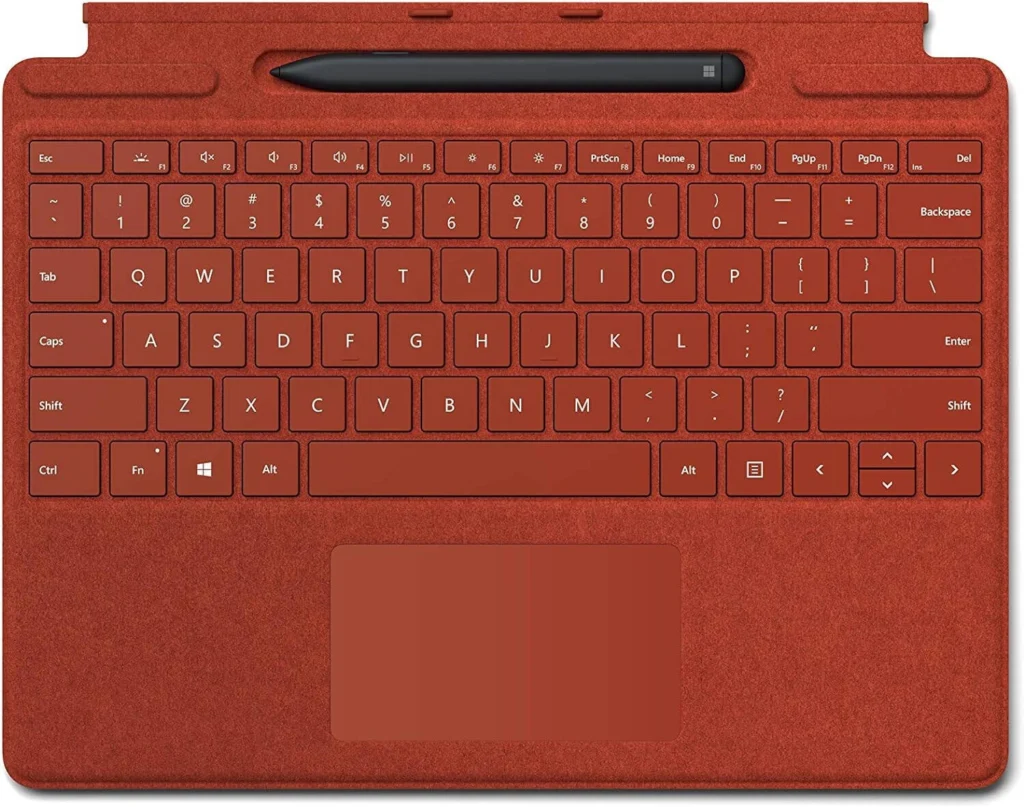 Having used the Surface Pro X Keyboard + Pen for several weeks, I can confidently say that it delivers a remarkable typing experience. The full mechanical keyset provides a delightful tactile feedback, making it a joy to type on. The keys are responsive and offer a comfortable keystroke depth. The thin and light profile of the keyboard doesn’t compromise on stability, and the Poppy Red color adds a stylish touch.