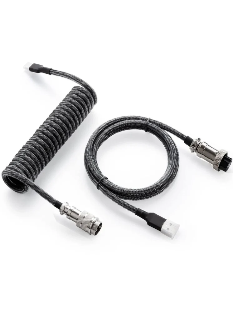 The Rock Cables USB-C cable immediately stands out with its unique aviator connector. This isn’t just a pretty face; it allows for quick cable swaps, a huge plus for anyone who likes to switch between setups or keyboards. The double-sleeved design feels incredibly premium, offering excellent protection against wear and tear. The coiled design is perfectly executed, preventing tangles and offering just the right length for my desk setup – no more frustrating cable stretches or annoying slack!