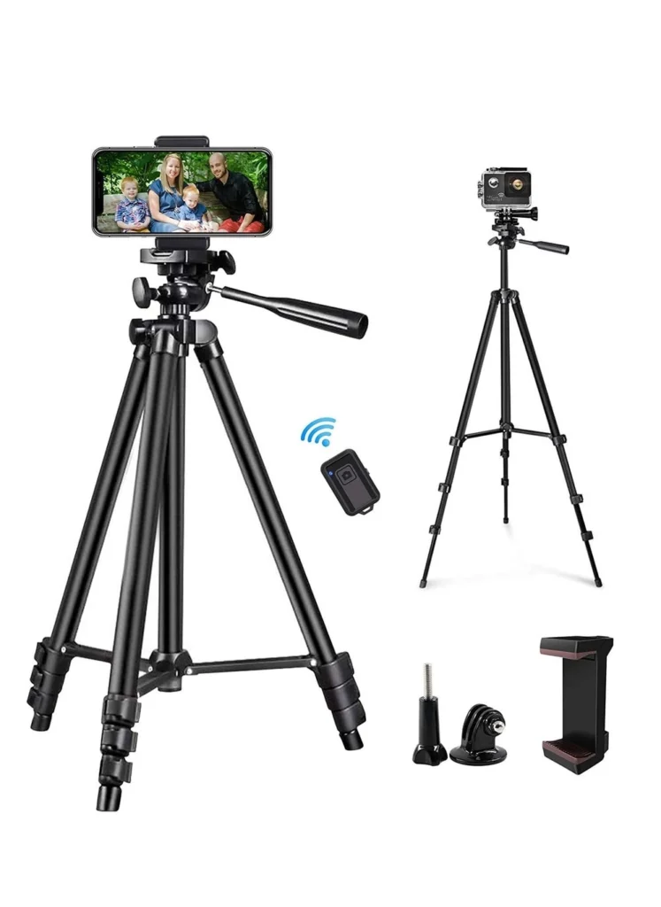 - Pros: Stable, lightweight, portable, easy to use, Bluetooth remote included, excellent value for money, adjustable height.