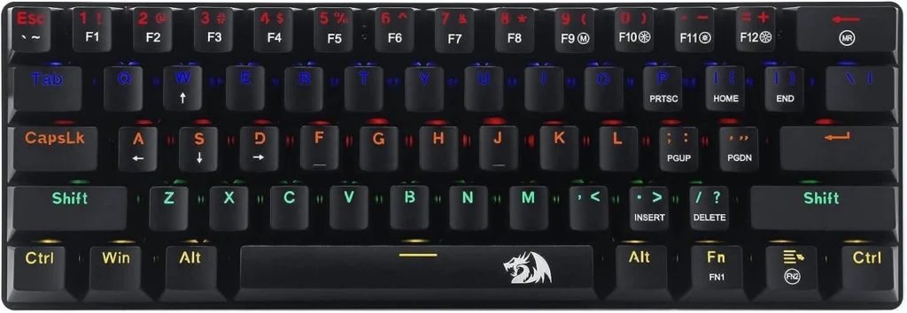 The Redragon K613 Jax is a 60% mechanical keyboard, which means it lacks the function keys and dedicated number pad found on standard keyboards. This results in a smaller footprint, making it ideal for those who prefer a minimalist setup or have limited desk space.