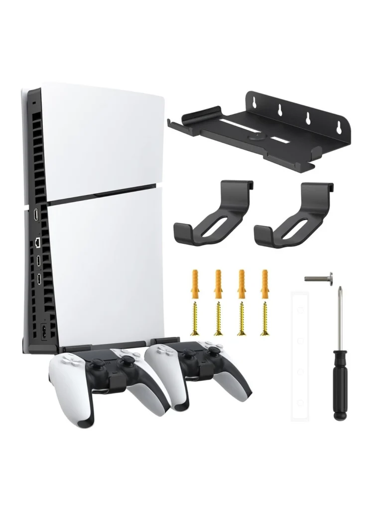 This wall mount is specifically designed for the 2023 PS5 Slim models (both disc and digital editions). The packaging includes all necessary screws, wall anchors and even small tools for installation. The most striking feature is the inclusion of two detachable controller holders—a neat addition for keeping your controllers organized and within easy reach. The design also incorporates ventilation slots on the bottom of the unit, a crucial detail for maintaining optimal console temperature.