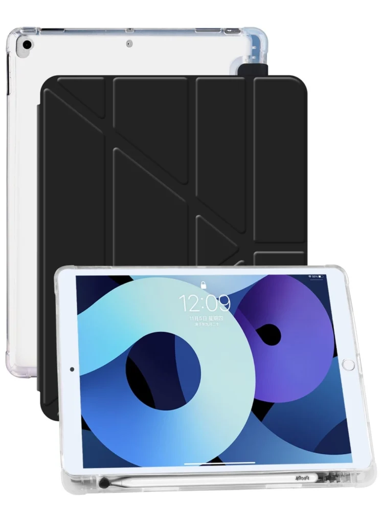- Pros: Excellent protection, clear back, built-in pencil holder, convenient stand, reliable auto sleep/wake, easy to install and remove.