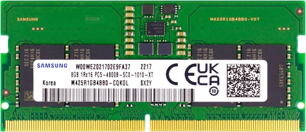 The SAMSUNG 8GB DDR5 SODIMM M425R1GB4BB0-CQK0L laptop memory module is a solid choice for those looking to upgrade their laptop’s performance. Offering a substantial 8GB capacity and fast DDR5-4800 speeds, this memory module promises to enhance responsiveness and multitasking capabilities. In this review, we’ll dive deep into the features, performance, and overall value of this module.