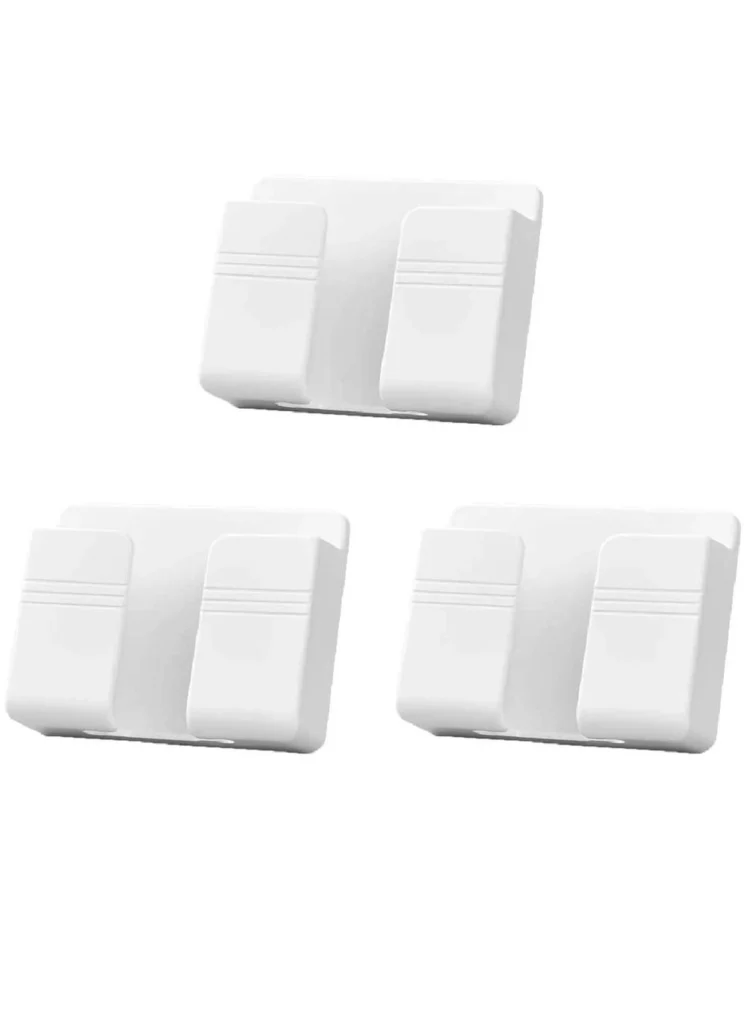 Installation was straightforward. The 3M adhesive gripped well onto various surfaces, including painted walls, tiles, and glass. I followed the manufacturer’s recommendation and waited 12 hours before placing any substantial weight on the holders, and this proved prudent. The adhesive held firmly even with repeated use and handling. The phone holder performed its function reliably, safely securing my phone while charging. The remote holders held my TV remote and air conditioning remote securely without issue. Over time, I noticed no significant degradation in the adhesive or the structural integrity of the holders themselves.