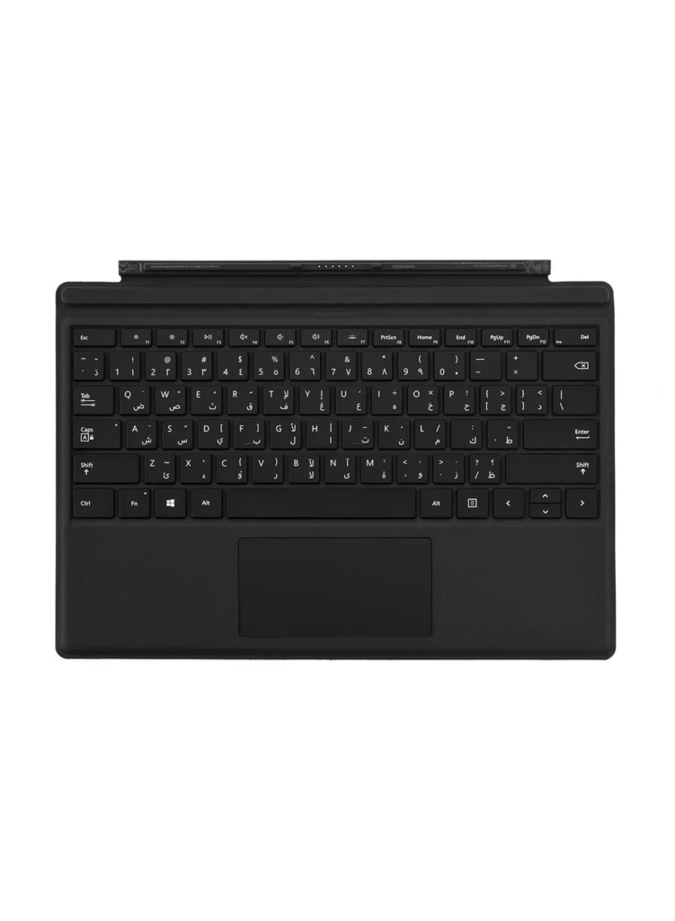 The FMM-00014 immediately impresses with its sleek design and sturdy build. The chiclet-style keys feel responsive and well-spaced, providing a comfortable typing experience. The inclusion of both English and Arabic layouts is a major selling point, catering to a wider audience. The magnetic connection is strong and secure, ensuring the cover stays firmly attached to the Surface Pro. One touch access to frequently used functions is also a plus. Backlighting is very useful when working in low-light conditions.