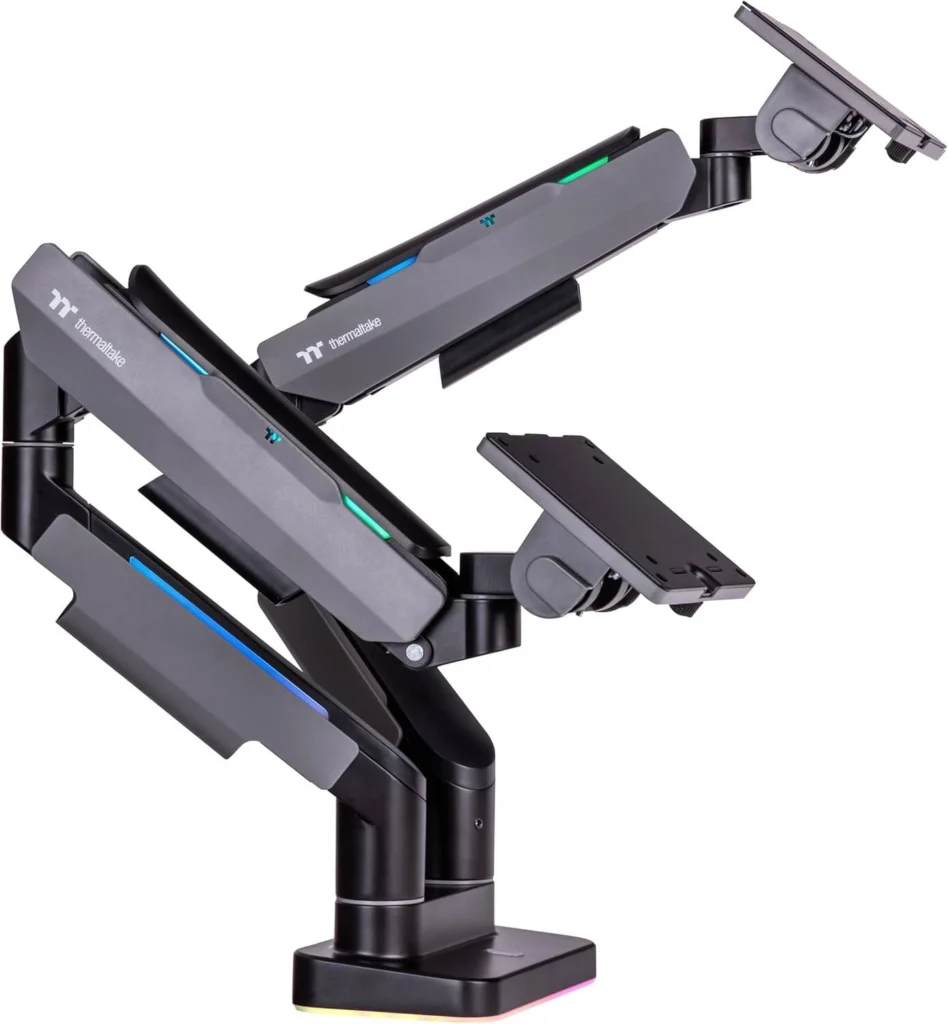 The Thermaltake Dual Heavy Duty RGB Monitor Arm boasts a range of features designed for optimal flexibility and customization. Here are some of the key highlights: