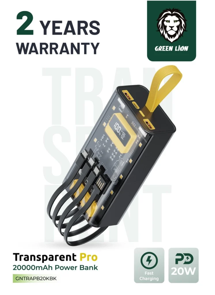 The GNTRAPB20KBK boasts an impressive array of features. Its transparent casing allows you to see the internal components (a nice design touch!), and it includes a digital display showing the remaining battery life – a very useful feature. The integrated cables (Lightning, USB-C, and Micro-USB) are a convenient addition, eliminating the need to carry separate cables. The inclusion of two USB-A ports and a USB-C PD port provides ample charging options for multiple devices simultaneously. The 20W fast charging capability is a major plus.