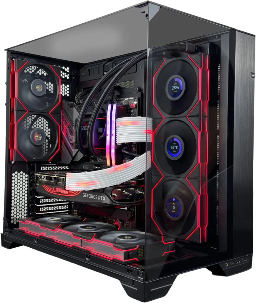 The Vision Tower Gaming PC is designed to deliver unparalleled gaming performance, capable of running the latest AAA titles at high frame rates and resolutions. Its core components, the Intel Core i9-14900KF processor and NVIDIA RTX 4080 SUPER graphics card, are among the most powerful available, ensuring a smooth and visually stunning experience. Let’s take a closer look at what makes this gaming PC stand out.